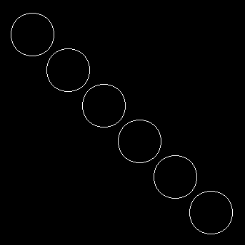 #include <graphics.h> int main() { int gd = 0, gm = 9, i; initgraph(&gd, &gm, NULL); for (i = 50; i <= 300; i = i + 50) { setcolor(15); circle(i, i, 30); } delay(5000); return 0; }
